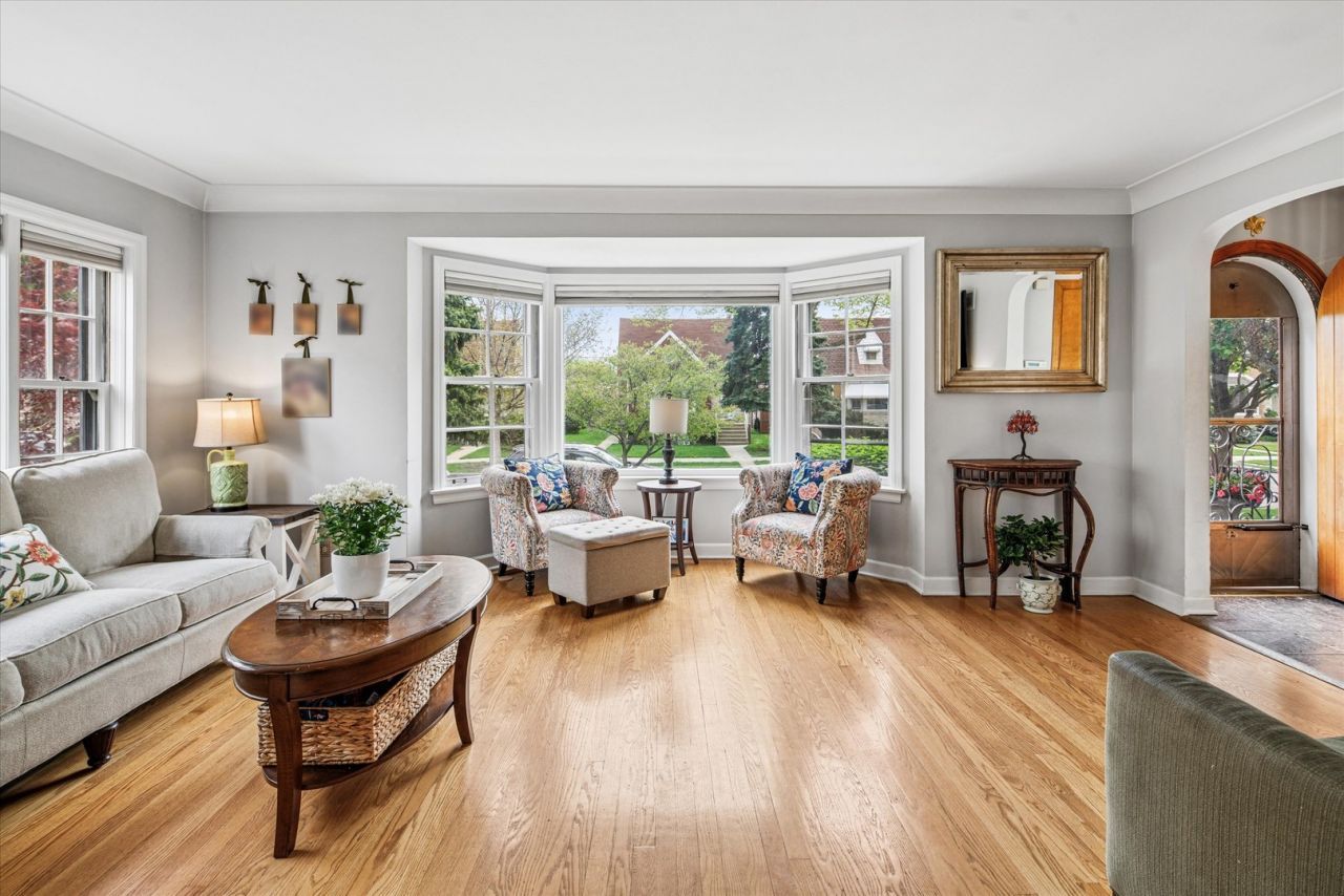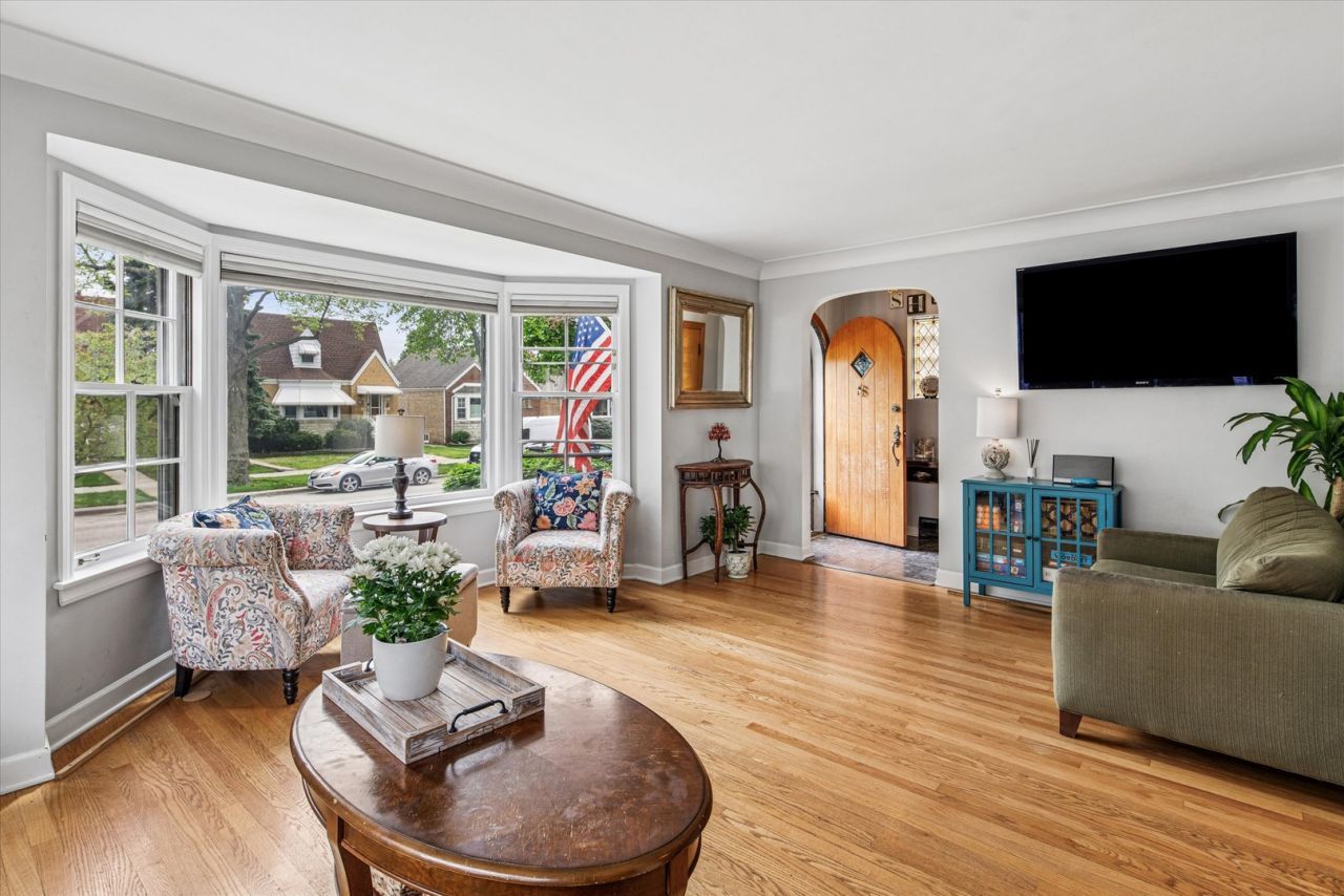 Incredible oversized English Tudor filled with character, space, and thoughtful updates throughout. Gracious living and dining rooms set the tone, offering timeless charm and an ideal layout for both everyday living and entertaining. The expansive eat-in kitchen features rich cherry cabinetry, a center island, walk-in pantry, and updated lighting, with newer appliances including refrigerator, dishwasher, microwave, and freezer (2025). Custom oak stairs lead to a full brick addition, where the vaulted primary suite offers a true retreat with a dressing room, walk-in closet, and spa-inspired bath with jacuzzi tub and steam shower. Second floor laundry adds everyday convenience. The stunning lower level expands the living space with a brick fireplace, sliding doors leading to a beautiful stone garden, a dedicated office, guest suite, and exercise room. Set on a wide, landscaped 40-foot lot, the outdoor space also includes a deck perfect for relaxing or entertaining. Additional updates include tuckpointing (2024), water heater (2020), sump pump (2020), French drains, overhead sewers, and updated lighting throughout (2025). Ideally located just a short distance to Portage Park, this home offers incredible space, charm, and functionality in a fantastic setting.